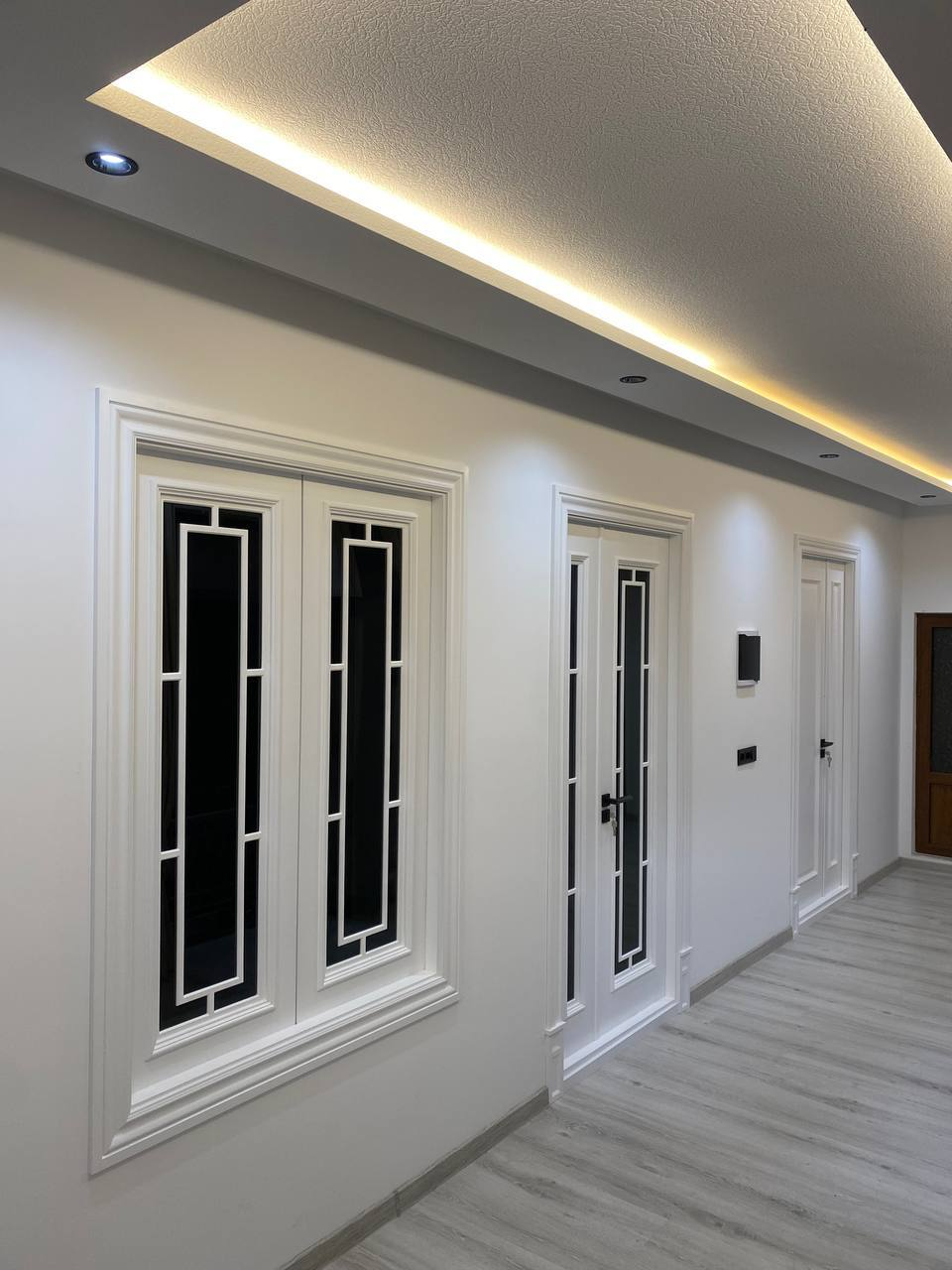 Yuqori sifatli MDF materialdan tayyorlangan zamonaviy xaytek dizayndagi eshik. Har qanday interyerga mos keladi.